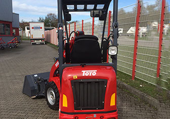 Alle Toyo Hoflader zeichnen sich durch eine kompakte Bauweise, einen niedrigen Schwerpunkt, geringen Wenderadius, kraftvolle Leistung und eine Vielzahl verschiedener Anbauwerkzeuge aus. Durch das Knickpendelgelenk haben alle vier Räder ständigen Bodenkontakt. So bewegt sich die Maschine mit maximaler Traktion und wird damit einzigartig wendig.